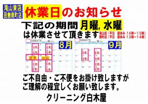 定休日のお知らせ